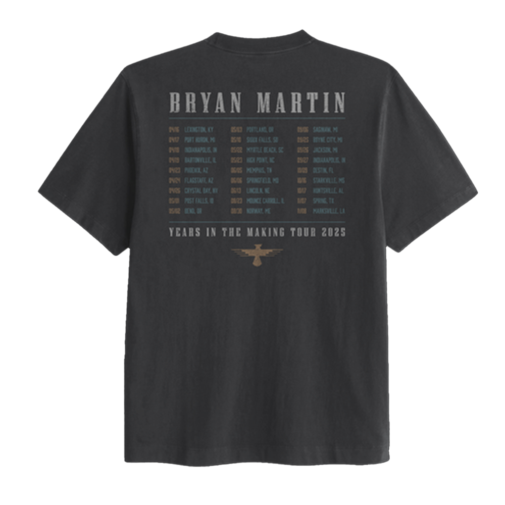 Years In The Making tour t-shirt with the 2025 tour dates printed on the back